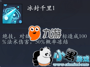 绝技,对敌方随机4个目标造成100%法术伤害,50%概率冻结。