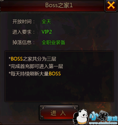 玩家能够进入Boss之家,boss之家是集合大量boss的地方,会有着比个人boss等级更高也更强力的boss,每天进入boss之家就能获得20点活跃值。