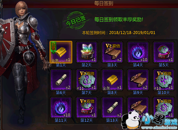 玩家每天登陆可以签到,系统每过一段时间会发起一轮新的签到。每次签到就能获得系统送出的材料奖励,VIP玩家还会概率获得多倍奖励。