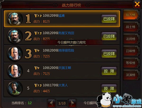 每天可以膜拜在世界排行榜上有名的玩家,一天最多可以膜拜三名玩家,膜拜玩家也能为你带来大量的经验值。
