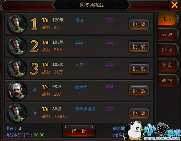 玩家每天在竞技场挑战其他玩家五次,无论输赢,都将会获得十点活跃度。