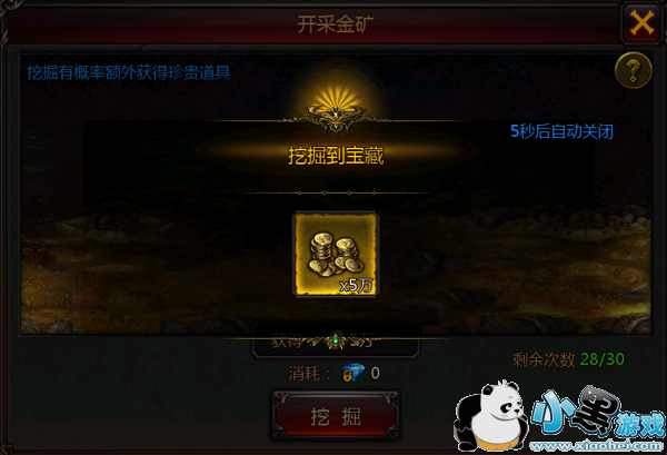 每天可以在矿坑处开采金矿,开采金矿能够获取金币。开采金矿的次数有限,玩家每天能够可以免费开采两次,如需要开采更多,则需要使用绑钻。