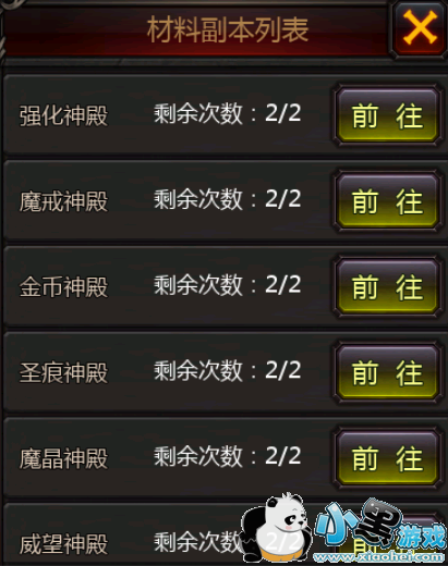 金币神殿(活跃度15)/魔戒神殿(活跃度15)/魔晶神殿(活跃度15)