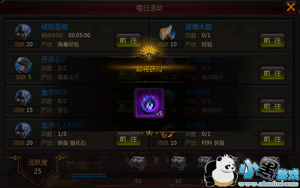 热血暗黑中有着丰富的日常玩法,这些玩法可以为你提供各种所需要的材料以及物资。当完成一些日常任务的时候,你就会获得一些活跃点数,每天根据你获得的活跃度,会有一些日常活跃的奖励可以领取。