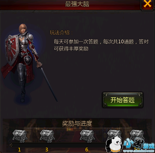 玩家每天都可以在最强大脑出参加一次答题,答题一共有十道题目,内容涉及到天文地理游戏。最后将会根据玩家答对的题目数给予丰厚的奖励。