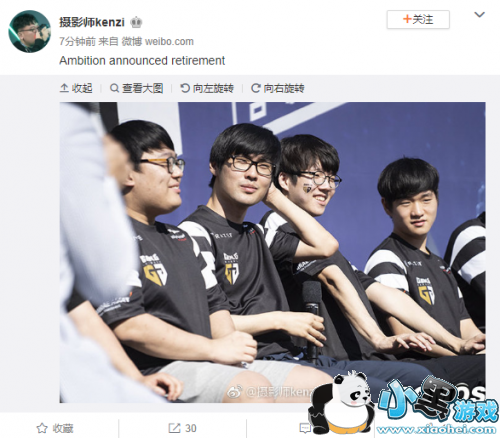 在LCK御用摄影师在微博上发布了一条消息,仅仅三个单词:Ambition announced(宣布) retirement(退役)。