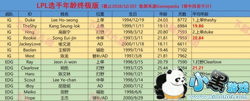 S8全球总决赛结束之后,很多战队纷纷大换血,为了S9赛季可以拿到更好的成绩,在其中也不乏一些选手选择退役,比如安掌门,或者说在考虑退役,比如RNG上单letme,其实这两人都面临着一个比较严峻的问题,就是在职业选手中,年纪偏大,安掌门就不用说了,letme是95年的,今年已经23岁了,如果S9赛季继续打,24岁的确算是职业高龄了。最近,有位NGA的老哥制作了一张LPL各大战队的平均年龄表,来看一下截止到圣诞节12月25日,每支战队的平均年纪是怎么样的吧!