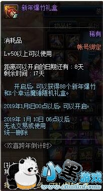 dnf新年爆竹礼盒在2019年1月1日0点之后,才可以开启。1月10日之后将删除。
