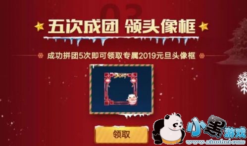 另外,之前有提到过2019元旦头像框,现在已经正式开启相关活动,在游戏大厅中会有活动弹窗,如果没有重登即可解决。该活动主要通过邀请好友参与,获得一些游戏奖励,累计成团五次,即可领取2019元旦头像框。