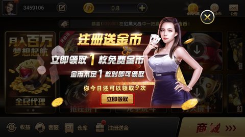 玩家游戏账户金币不足1元时,即可点击领取1元金币。每日最多可以领取九次。