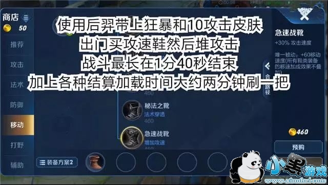 很多人都没有发现,其实这次的荣耀战令的任务是可以通过人机来完成的,我们首先是可以选择1V1的人机模式的,使用后羿这个英雄,然后带上狂暴和一个皮肤,出门直接买攻速鞋主要堆攻速和攻击力,