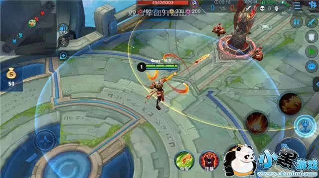 然后战斗开始之后直接推塔,大家都知道在墨家机关道这个地图,后羿是可以站在塔外A塔的,这个时候什么都不用管,直接推塔就行。