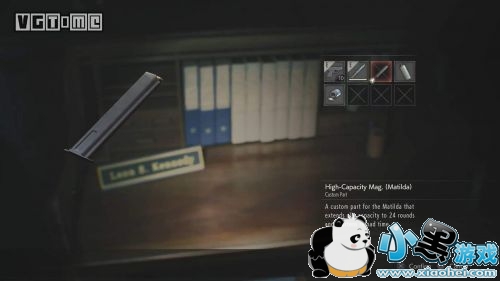 里昂的办公桌有两道锁,左边的锁答案是【NED】,右边的锁答案是【MRG】,打开之后卡伊获得大容量弹匣(玛蒂尔达)。拿到了就立刻在物品栏里把它和手枪组合吧。