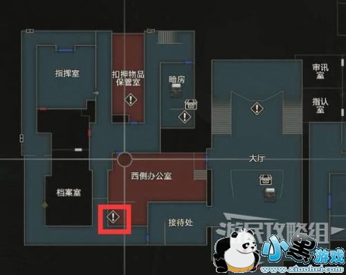 到一楼西侧档案室,用梅花钥匙开门。进门有火药,里面桌上有手榴弹和“千斤顶把手”。