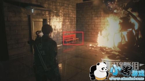 电子零件安到这里,打开卷帘门,墙上插着把小刀。来到警卫室(这里就是游戏一开始救警员没救成功的地方)。
