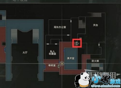 到二楼美术室上方,使用方形曲柄打开卷帘门。