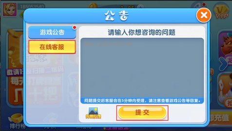 1、超凡娱乐联系客服在游戏主页面中点击“公告”按钮,进入“公告”弹窗。