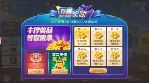 3、新人玩家“登录奖励”每日领取,签到直接领取金币奖励和免费积分。连续签到领更多。