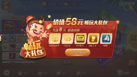 2、新手玩家“畅玩大礼包”超值抢购,金币福利、元宝、VIP周卡、踢人卡、喇叭等超值豪华礼包首充超值拥有。