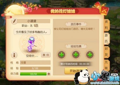 养成花灯娃娃,放它游历三界吧!花灯娃娃游历三界过程中,将会认识各路好友,向好友学习本领,不断成长,挑战强大首领!娃娃等级突破和成功挑战首领后均可获得奖励!