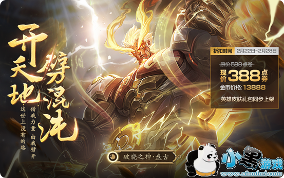 盘古英雄及其皮肤创世神祝将在2月22日零点加入碎片商店