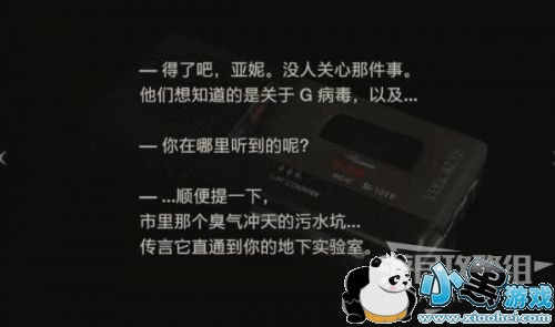 门打开,进去拿钥匙卡,同时获得“采访文字稿”。这里本采访的亚妮,就是威廉(G病毒研发者)的妻子。
