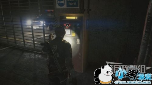 电子零件安到这里,打开卷帘门,墙上插着把小刀。来到警卫室(这里就是游戏一开始救警员没救成功的地方)。