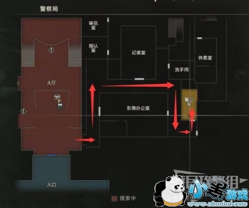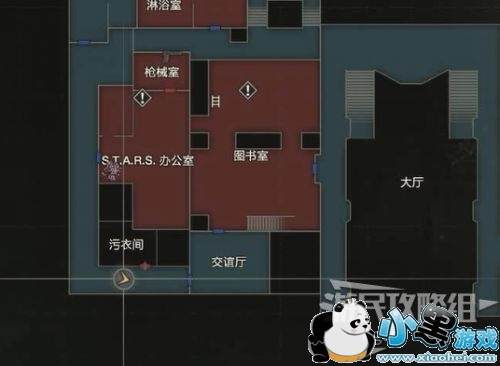 未探索的区域都在地图上可以看到了,下一步目标是抵达楼梯口上楼。我们先探索扣押物品保管室、西侧办公室、暗房,最后再上楼。