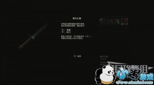 黑人警官给了里昂一把格斗匕首,除了可以当做武器攻击(每次攻击都会有损耗),还可以用来在被僵尸抓住时反击(类似生化1重制版的防身匕首)。虽然反击后还可以从僵尸的尸体上取回匕首,但是会消耗不少耐损度。