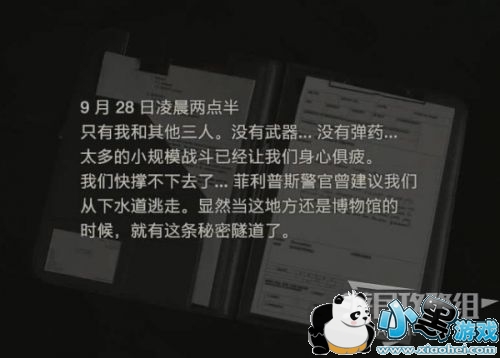 可惜还是没能拯救他(画面太血腥小孩子不要看),从他手中获得笔记本。看图可知,拿到三个圆形徽章,放到女神像的底座上,就可打开离开这里的地下通道。