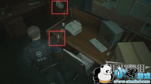 进入警局内部,面前的桌上有一盒手枪弹药,旁边的打字机是存档点。再往前有一个笔记本电脑,旁边的大箱子是异次元储物箱,暂时不用的道具可以临时寄存在这里,在游戏中的任意一个异次元储物箱,都可以取出之前放进去的道具。