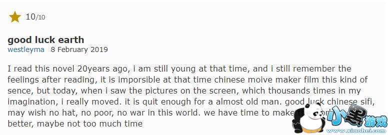 我读了20年前的这本小说,当时还很年轻,我还记得读完后的感受,当时中国电影制片人拍摄这种形象是不可能的,但是今天,当我在屏幕上看到这些照片时 在我的想象中成千上万次,我真的很感动。 这对于一个几乎是老人来说已经足够了。 祝你好运中国的科幻,不妨没有帽子,没有穷人,没有战争在这个世界上。 我们有时间让世界变得更美好,也许没有太多时间