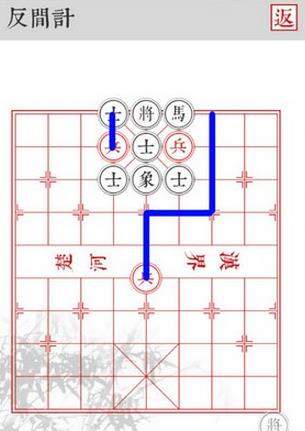 2.沿着蓝色路线移动,避开象位,六路兵侧兵杀左侧黑将,四路兵杀右侧黑将。