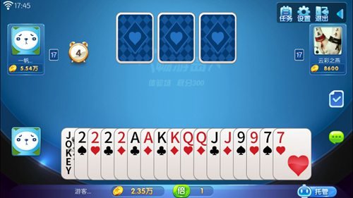 每当别人快速打压自己牌型的时候,总能给人一种压迫感,似乎对方能够掌控全局般,而自行乱了阵脚。怎样做到 快速掌控全局的关键在于记牌。但刚抓到手的牌有17张,如何才能快次记住呢?首先,三张底牌以及一张明牌的花色以及大小要记清楚,用来判断对方是否出过,花色要盯住,很重要的!如果总是不出,牌还很小,同花色也见过,可以想象,可能有连牌或者三带了。