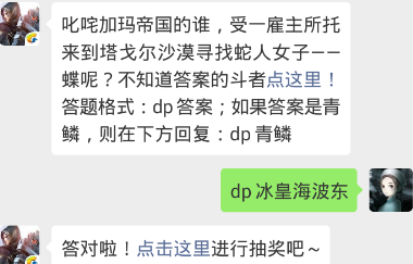斗破苍穹每日一题答案5月5日 叱咤加玛帝国的谁,受一雇主所托来到塔戈尔沙漠寻找蛇人女子——蝶呢?