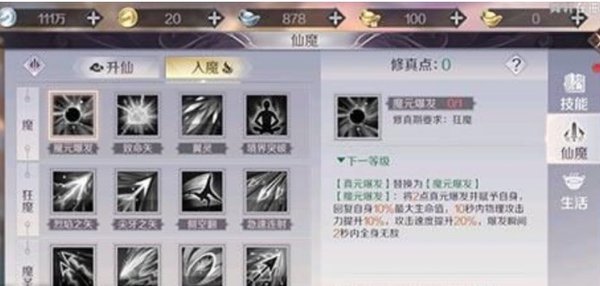 在游戏界面右方,我们看见有个菱形的标志,我们就点击这个菱形的标志。完美世界手游攻略这个时候,我们就来到了功能界面。在功能界面,我们可以看见有个技能功能,点击技能。