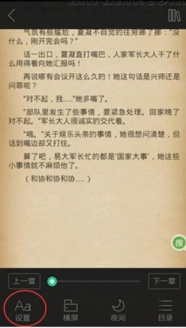 2、点击小说进入阅读的界面了,点击“菜单键”选择“设置”功能。