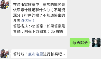 斗破苍穹每日一题答案4月1日 在跨服家族赛中,家族的排名是依靠累计胜场和什么分(不是资源分)排序的呢?