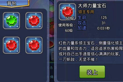 每个皮肤可以镶嵌2个宝石,宝石可以提升玩家一刀斩出手速度以及提高攻击力,宝石需要通过宝石碎片合成,碎片可通过签到、英魂深渊获得。