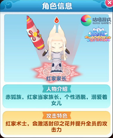红家家长的对应元素是红色元素,在搭配阵容的时候要注意色彩的平衡哦。他的武器【红家秘录】技能则可以激活所有的封印之花,一口气让所有的封印元素瞬间解放的感觉那可是相当爽快了~高级武器在激活封印之花的同时还可以提升全队的攻击力,在有封印之花的BOSS攻略关卡中他必然会成为上阵成员首当其冲的选择呢。