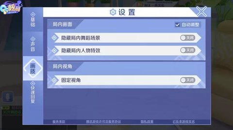 当然觉得画面特效太炫的,也可以在阳台的那里关闭特效,选择隐藏局内舞蹈、人物特效和固定视角就好啦~