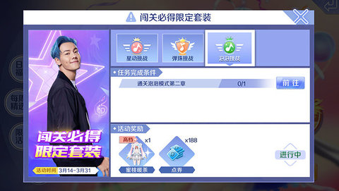 另外3月14日-3月31日之间,玩家参与事务所中的关卡挑战,成功达成任务条件的玩家,可以领取到活动奖励中的高档服饰,女生的服饰叫做蜜桃暖茶,同样套装包含了发型、鞋子。玩家需要通过星动模式、弹珠模式、泡泡模式,这3种不同的玩法模式挑战来获得,除此之外还可以获得一些点券的奖励!