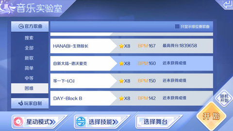 《自新大陆》这首歌的难度达到了8星,另外歌曲160的BPM速度,在8星歌曲中也名列前茅,加上这是一首5轨按键的音符,所以挑战起来难度略高。这首歌的难度在于音符转换较快,中间穿插的密集变轨长按音符,非常容易出现按键MISS。
