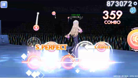 最后,《自新大陆》后半段的节奏音符,和之前的歌曲是相反的循环,但是结尾部分和之前的都不一样,359个音符后会进入歌曲的结尾部分,这里会出现密集的长按音符,挑战时需要注意长按音符的先后衔接按键。