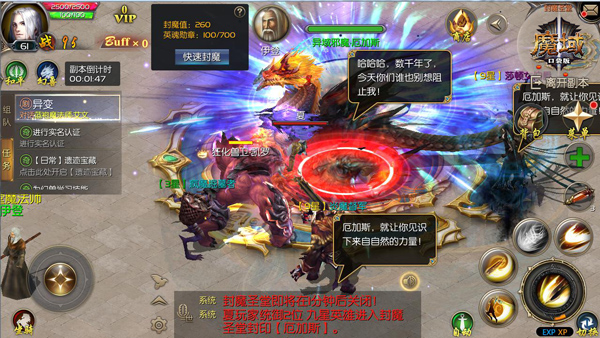 在每次封魔行动中,虽然每位玩家不可以组队作战,但是玩家需可以召唤封魔英雄协同完成活动,每位玩家最多可以召唤六位封魔英雄共同战斗,而这几位封魔英雄则是制胜的关键。玩家每次召唤的封魔英雄在星级和品质上均有所差异,且星级越高的英雄整体战力也就越强,在封魔途中也更加轻松。