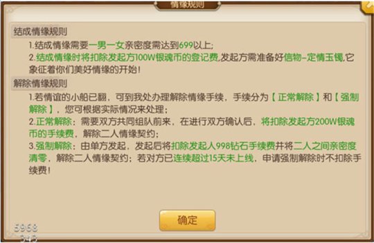 当玩家达到40级时,可前往史莱克城的牧师处了解情缘规则,如果双方达成要求,可以组队在牧师处结为情缘,结为情缘后可获得情缘之戒,不仅可以提升战斗力,更可以获得情缘技能。