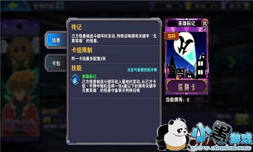 除了怪兽卡外,作为陷阱卡的英雄标记也是元素英雄卡组中必不可少的一环,英雄标记能够在我们场上的怪兽被破坏时发动,特殊召唤一只拥有元素英雄关键词并且4星以下的怪兽,也就是说如果有英雄标记在手中的话,我们能够最大限度地重复利用怪兽去强行跟对手进行硬碰硬而不用担心没有相应的怪兽卡无法融合召唤蕾雅怪兽。