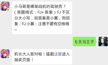 问题:小马哥是哪架战机的驾驶员?