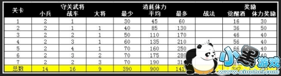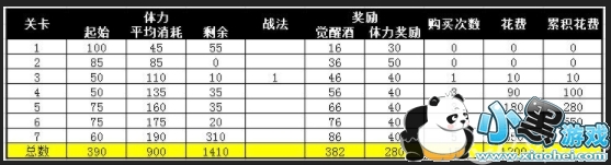 【4】那么平均概率中,长坂坡突围的前七关的体力值跟需要购买的次数数据为以上表格对比。在变化中我们发现,在免费中玩家可以获得五十二的觉醒酒,对于小R玩家来说一般是可以通关四到六关。