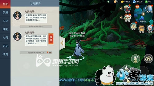 在密室里面一直往前走,然后就可以触发一个江湖同好的消息,这个密室很大,请务必全部都逛一遍,一个七秀弟子与你对话,然后直接点击接取任务,就可以得到长耳玉婵惹人怜任务。